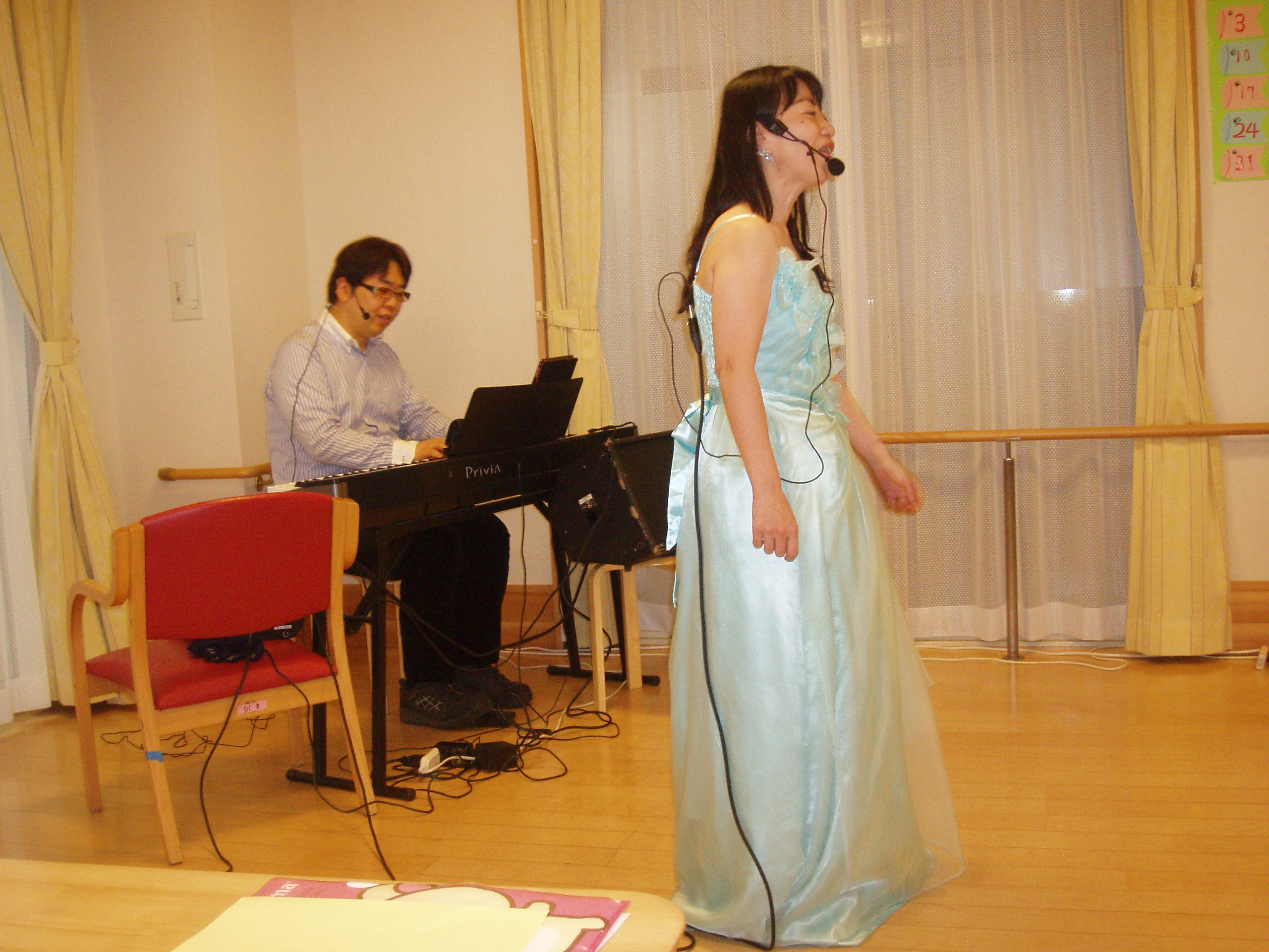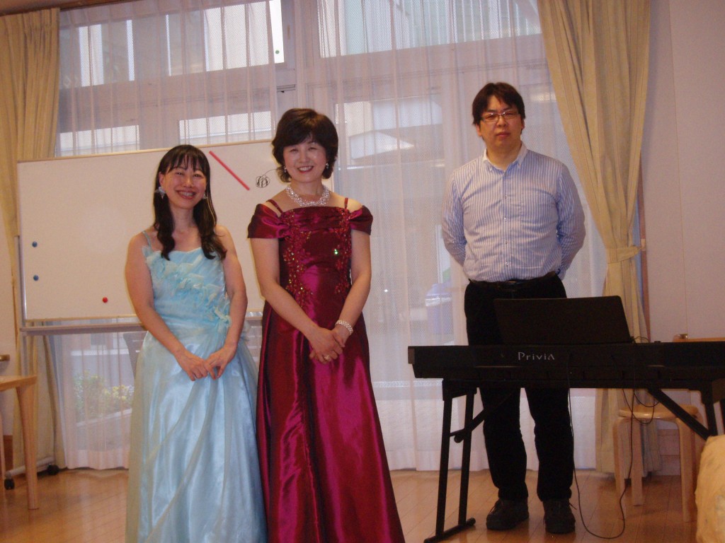 5/9にお邪魔したのは、広尾のありすの社 洛和ディサービスさん。新緑がきれいな季節いうことで、さわやかなイメージで新曲を入れて、映画音楽、歌謡曲、唱歌、オリジナル曲の手話などいろいろなジャンルの曲をお届けし、皆さん大いに盛り上がってくださいました。すべての曲に一緒に大合唱していただき、こちらが元気をいただきました^^喜んでいただけて、本当によかったです!また来ますね~^^。