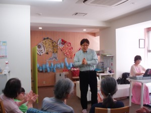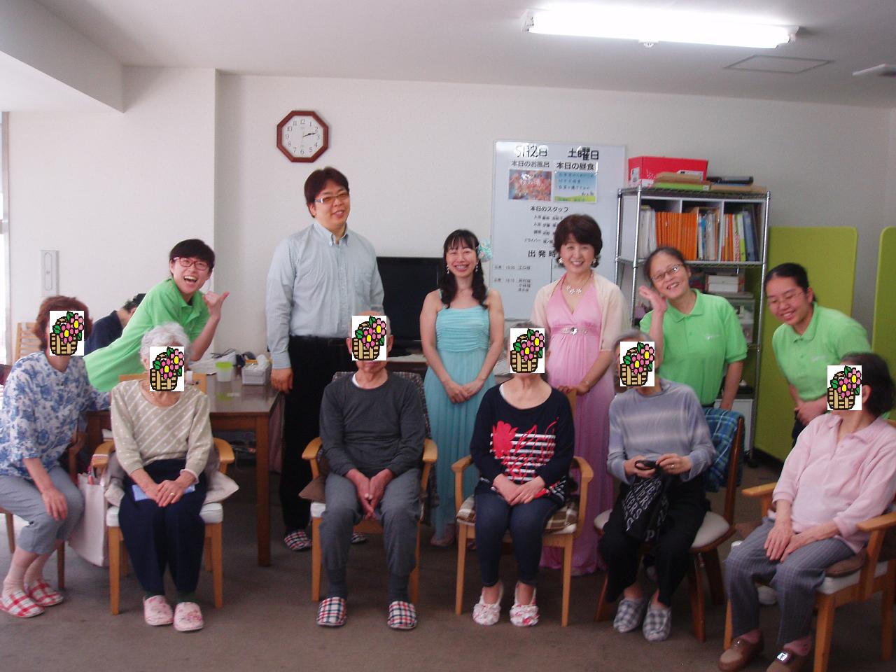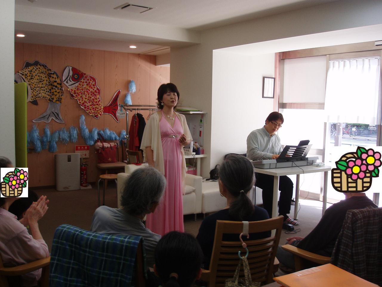 5/2は、新御徒町のデイサービス愛ふれあだんらんさん。季節の歌やなつかしい歌謡曲、映画音楽、手話つきのオリジナルの曲をお届けしました。皆さん、笑顔で一緒に大きな声で歌って、手話も楽しく参加していただきました。スタッフの方々も参加して盛り上げていただき、ありがとうございます。とても楽しいひとときでした。また来ますね~。^^